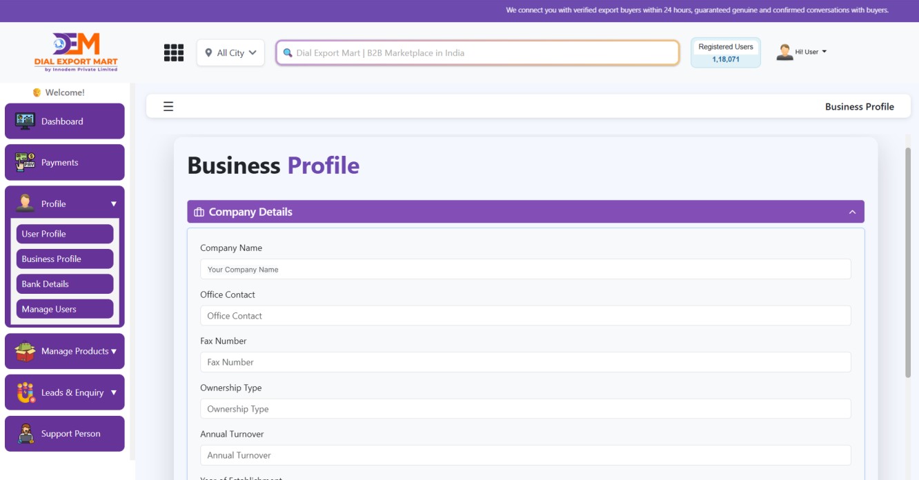 That’s where B2B portals like Dial Export Mart come into play. These platforms connect businesses with verified buyers across India and International markets, helping you expand your reach without spending a fortune. The best part? You can start promoting your products absolutely free of cost with their basic listing plan.