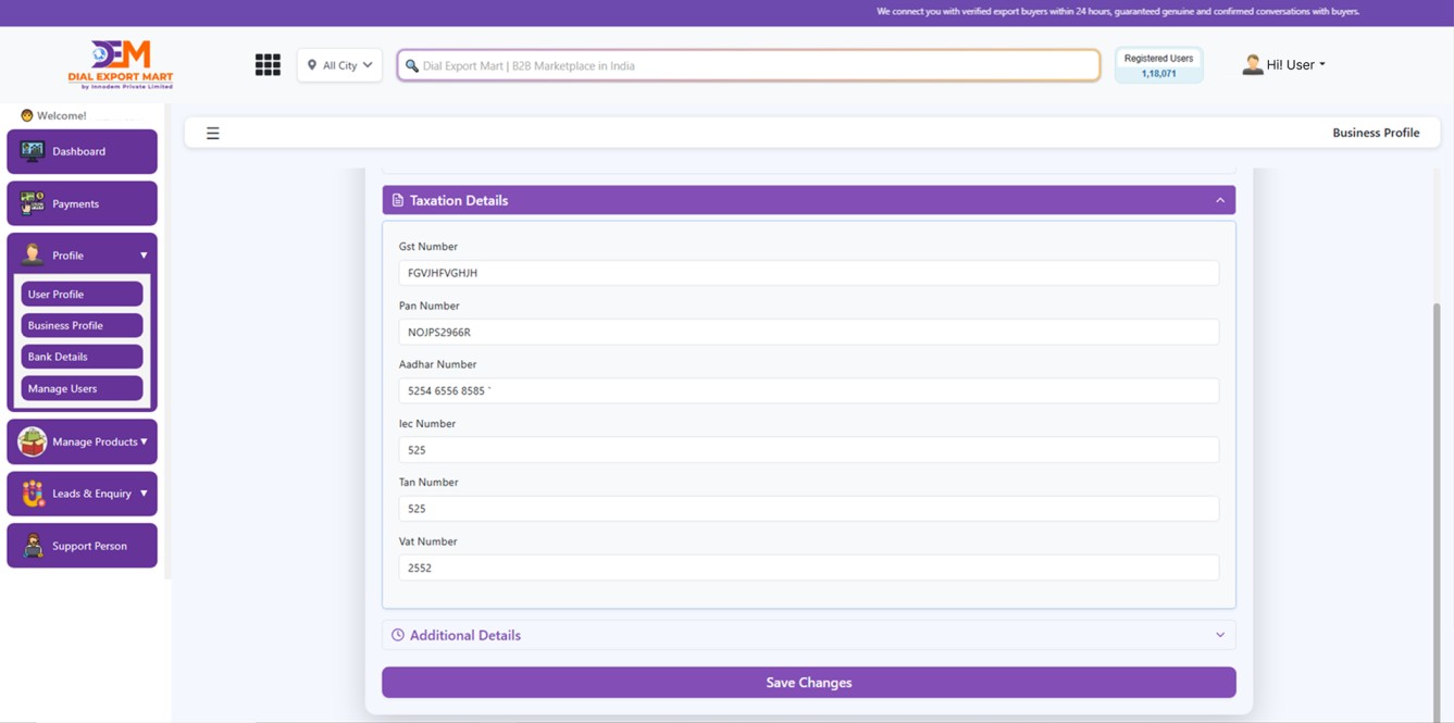 Once all the above details are entered and saved, you're ready to add your product listings and start getting inquiries.
