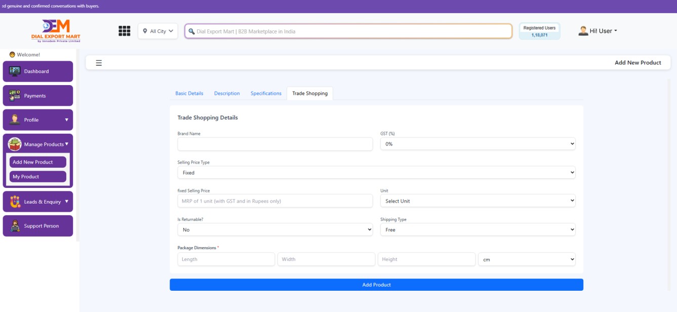 While adding a new product on Dial Export Mart, fill in the following details accurately